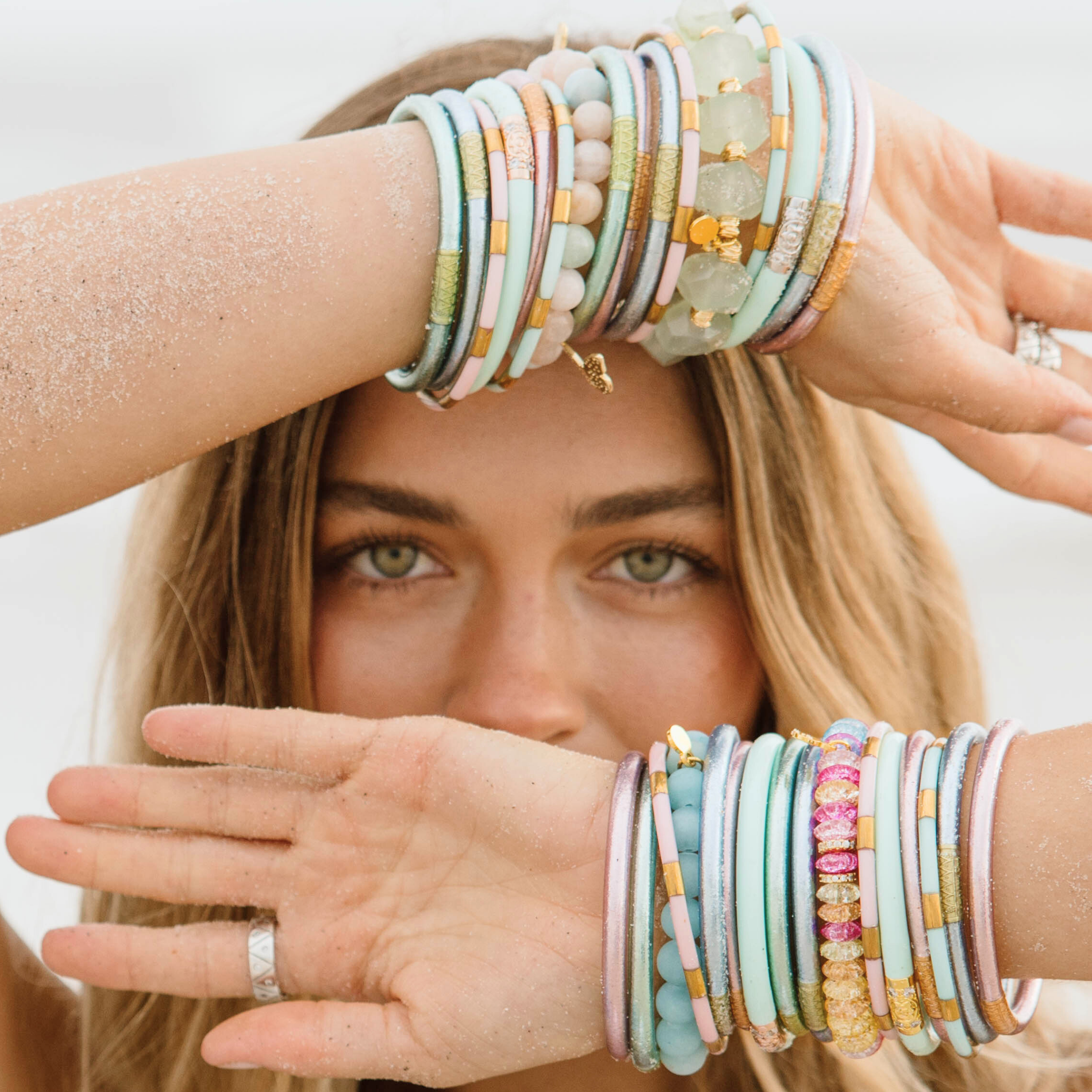 Featuring the new Mint All Weather Bangles®, Mint Veda Bangles and Mint Brook Bracelet, this stack blends textures and tones to create a harmony as refreshing as an ocean breeze.