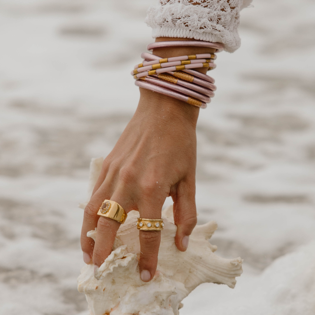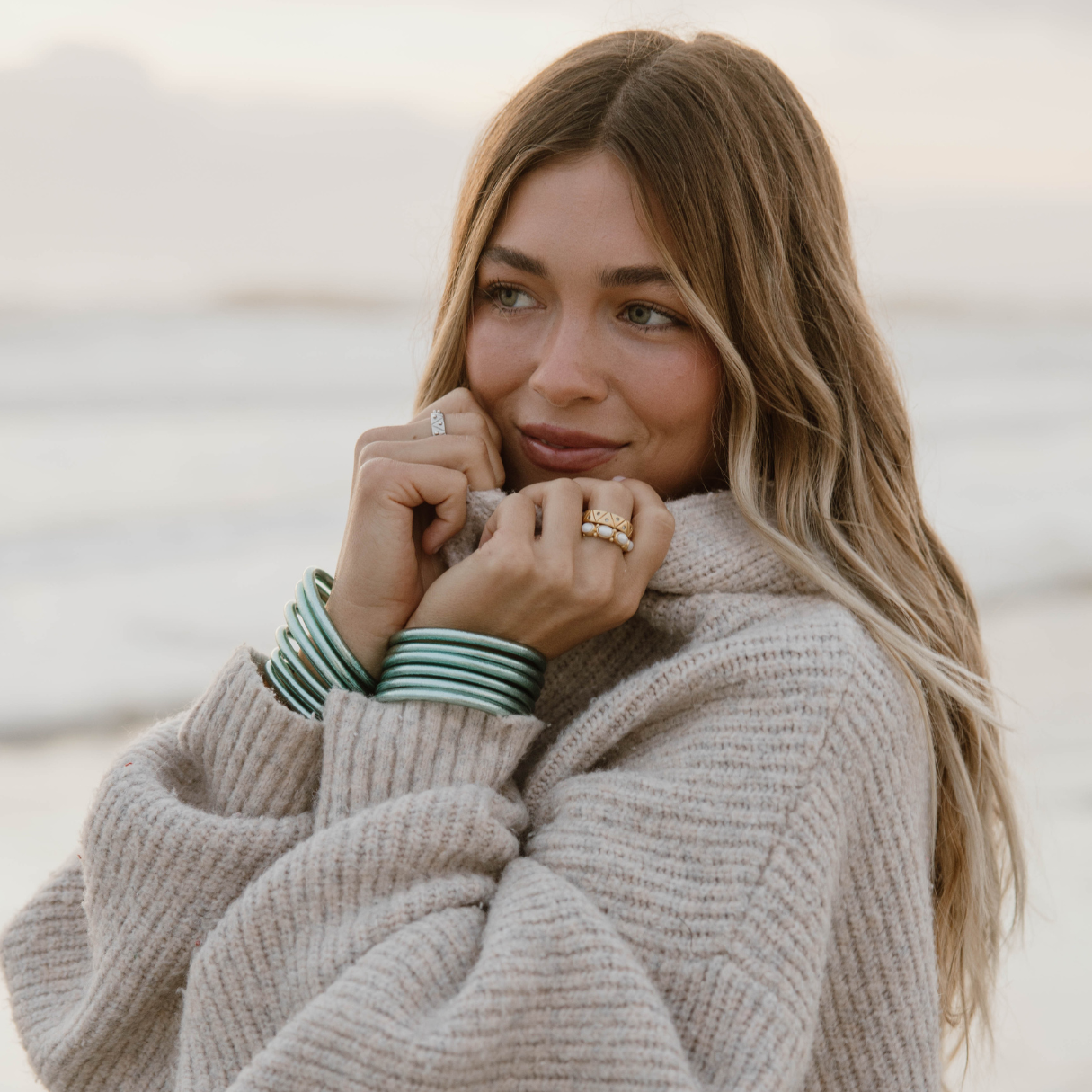 Our Seaglass Collection — a meditation in the softest blues and greens, hues kissed by the ocean herself.