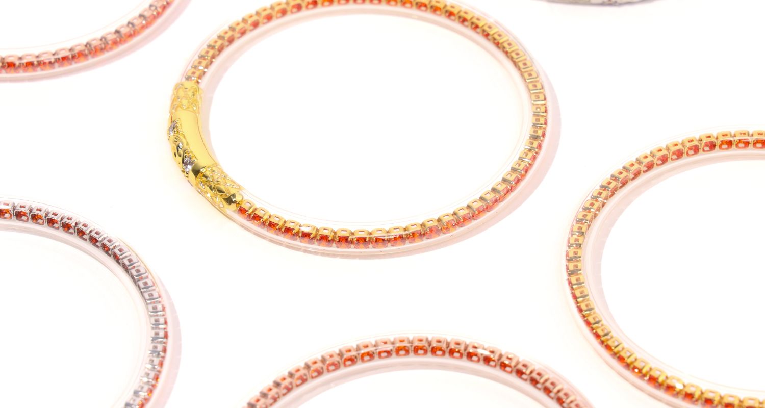 - Engarzan un hilo fino de cristales naranja vibrante.