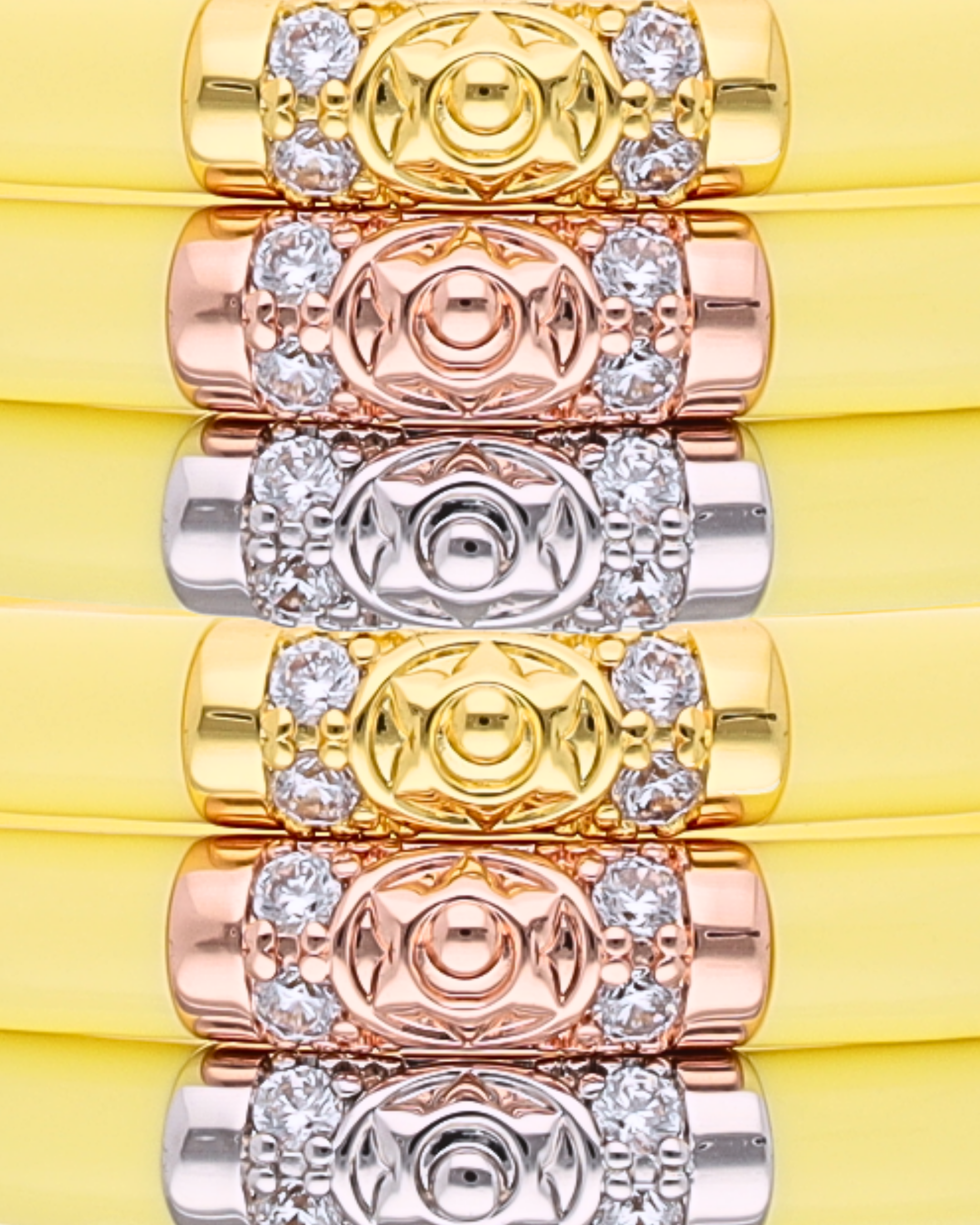 Ritual de Glamour Consciente: Pausa. Respira. Mientras el mundo despierta, desliza cada pulsera luminosa y imagina llevar contigo un pedazo de luz solar capturada. Establece tu intención para el día de avanzar por la vida con calidez y gracia. Susurra: "Irradio alegría. Mis días se despliegan hermosamente."